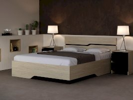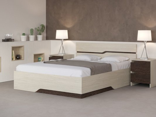 Внешний вид Современная кровать с изголовьем с необычным дизайном. Компактный размер позволяет сделать кровать центром внимания в комнате любого размера.