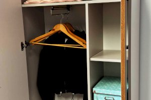 С другой - три больших полки, идеально подходящие для хранения одежды, книг или декоративных предметов.