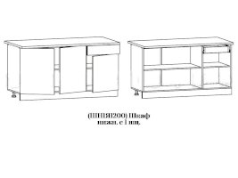 Глубина нижних шкафов без учета столешницы:490 мм, с учетом столешницы 600 мм