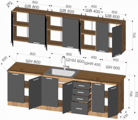 Шкаф верхний: 800х705х300 мм