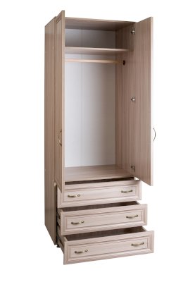 Шкаф с вместительными ящиками полного выдвижения на 400 мм. Штанга для полноценного размещения одежды, наверху удобная антресольная полка. Может комплектоваться полками.